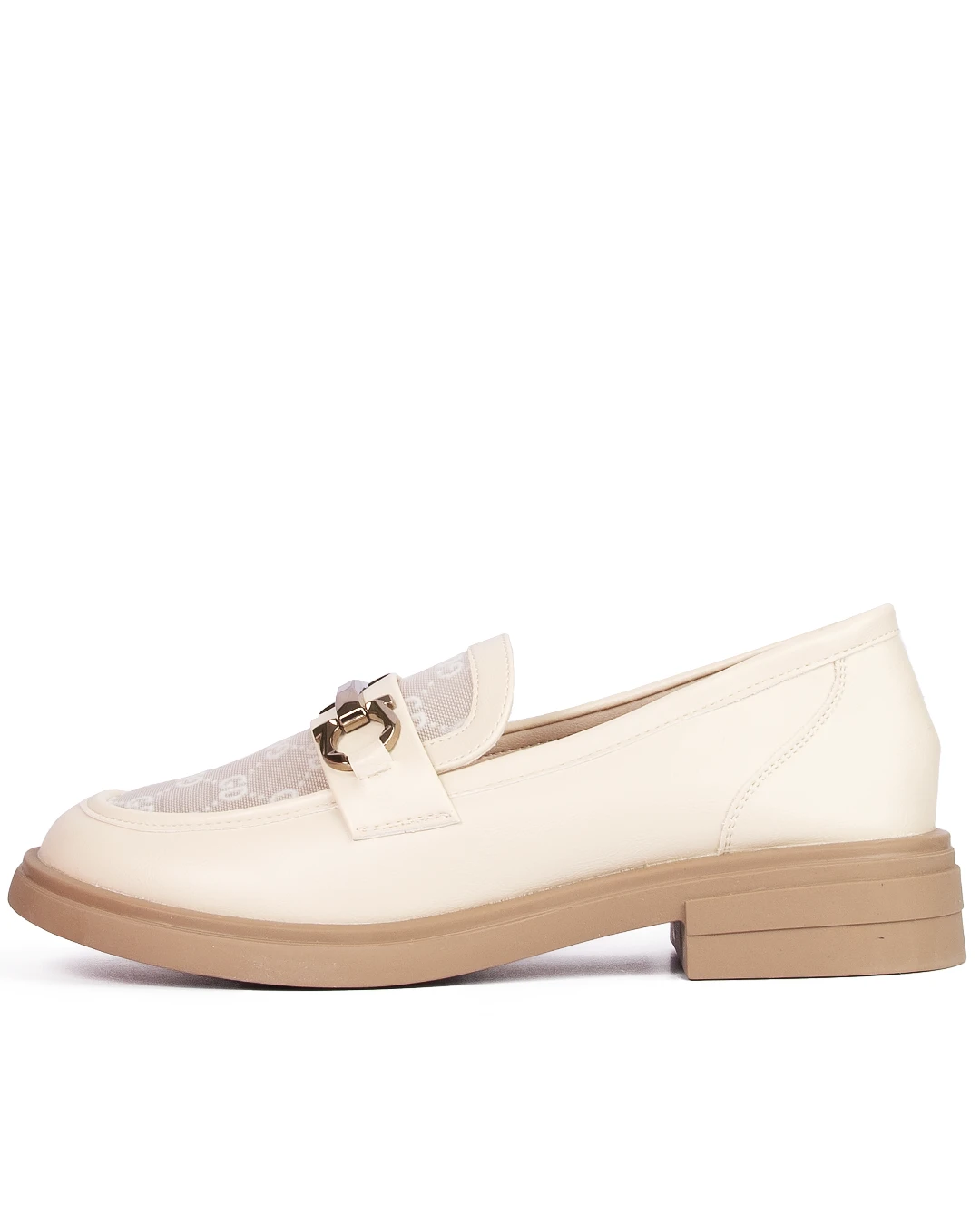 با این کفش لوفر سفید شیک، استایل روزانهتان را خاص و متمایز کنید. ترکیب رویه سفید با پارچه طرحدار GD و جزئیات فلزی طلایی، ظاهری لوکس و چشمگیر به این کفش داده که بهراحتی میتواند نقطهطلایی استایل شما باشد. رنگ سفید این مدل، حس لطافت و تمیزی را به استایل شما میبخشد و برای فصلهای گرم یا استایلهای مینیمال انتخابی بینظیر است. چه در محل کار باشید، چه در یک قرار رسمی، این کفش همیشه همراه مطمئن شماست.