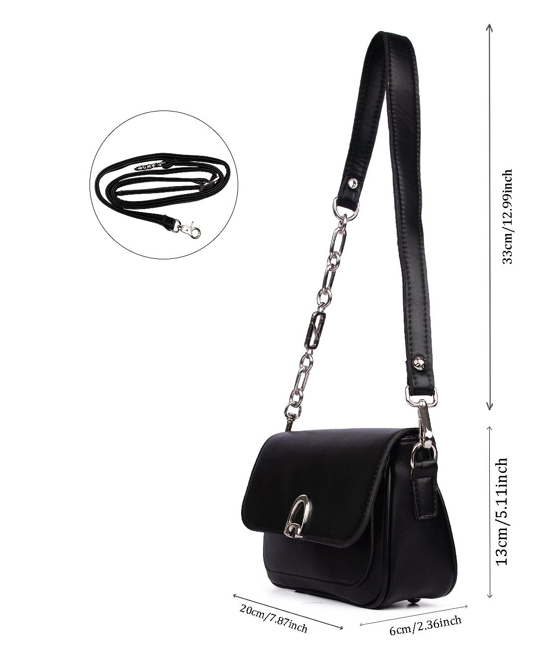 کیف دوشی زنانه مشکی با بند چرمی و زنجیری