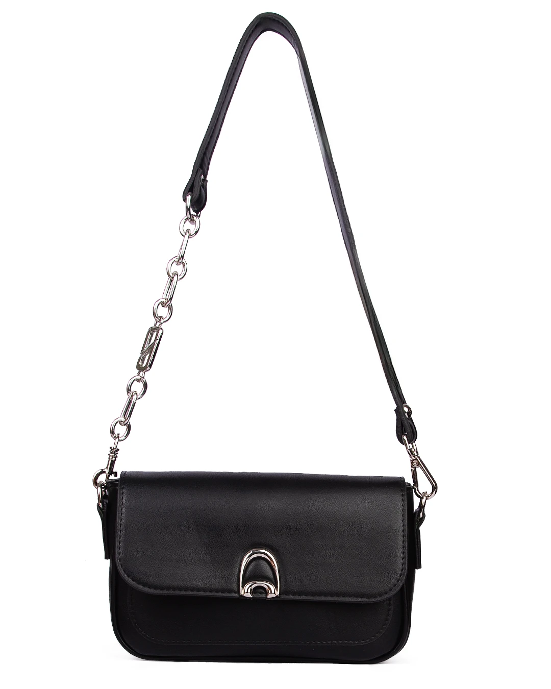 این کیف زنانه به خاطر طراحی مینیمال و رنگ مشکی، بهراحتی با انواع استایلهای اسپرت و رسمی ست میشود. بند ترکیبی زنجیر و چرم جلوهای مدرن به آن داده و باعث شده علاوه بر کاربردی بودن، ظاهر خاص و متفاوتی داشته باشد.